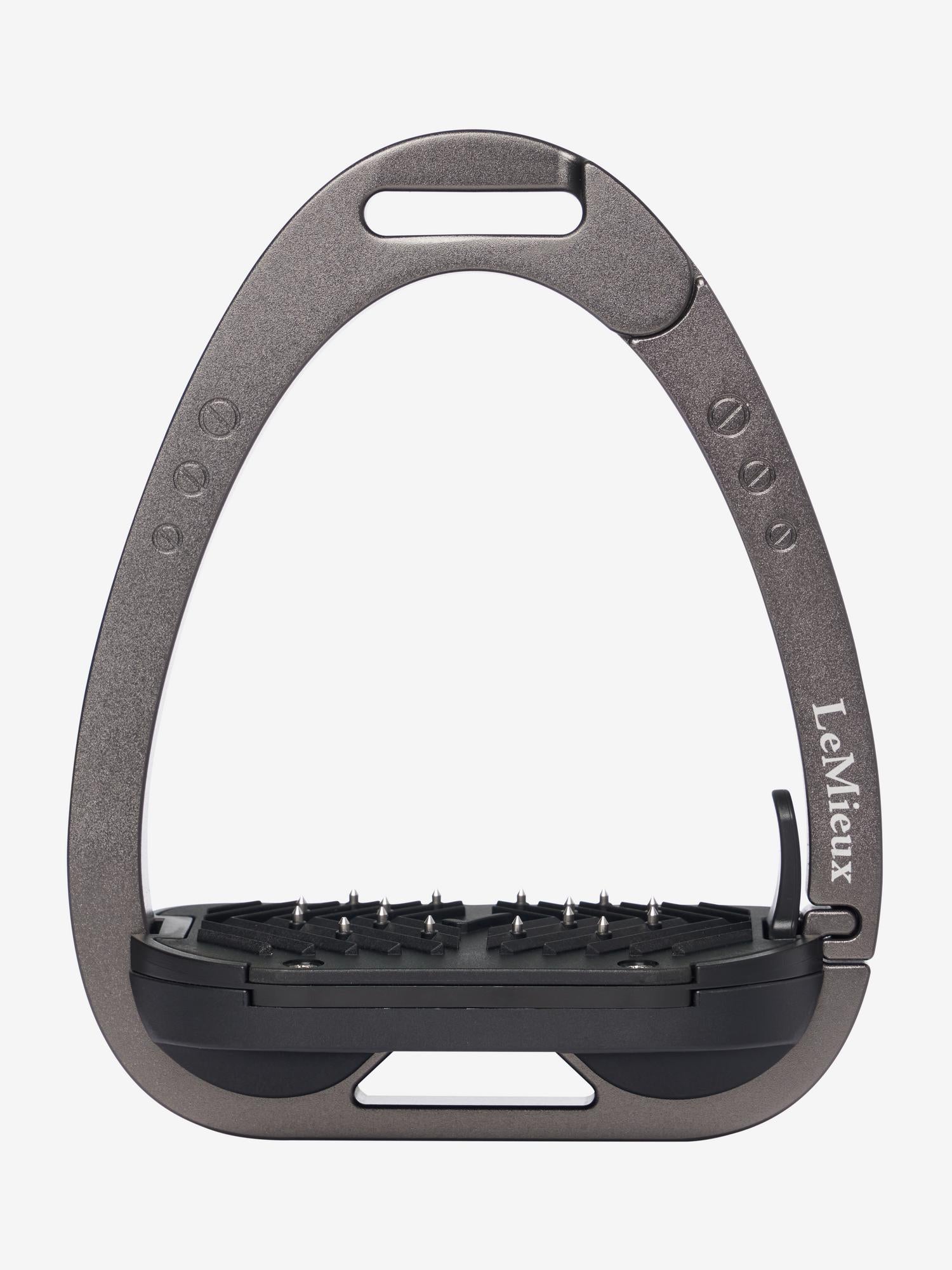 The footplate is supported by a twin balance arch system that distributes the weight evenly across the base of the stirrup frame. The apex of the frame is recessed and off-set, encouraging a 45º outward orientation which makes it easier for the rider to locate the optimum angle for the foot and regain a lost stirrup.